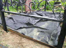 Первым делом мы демонтировали бетонный цветник, сняли ограждение. Территорию участка укрыли геотекстилем, а по периметру выставили новое, ковано-сварное ограждение.